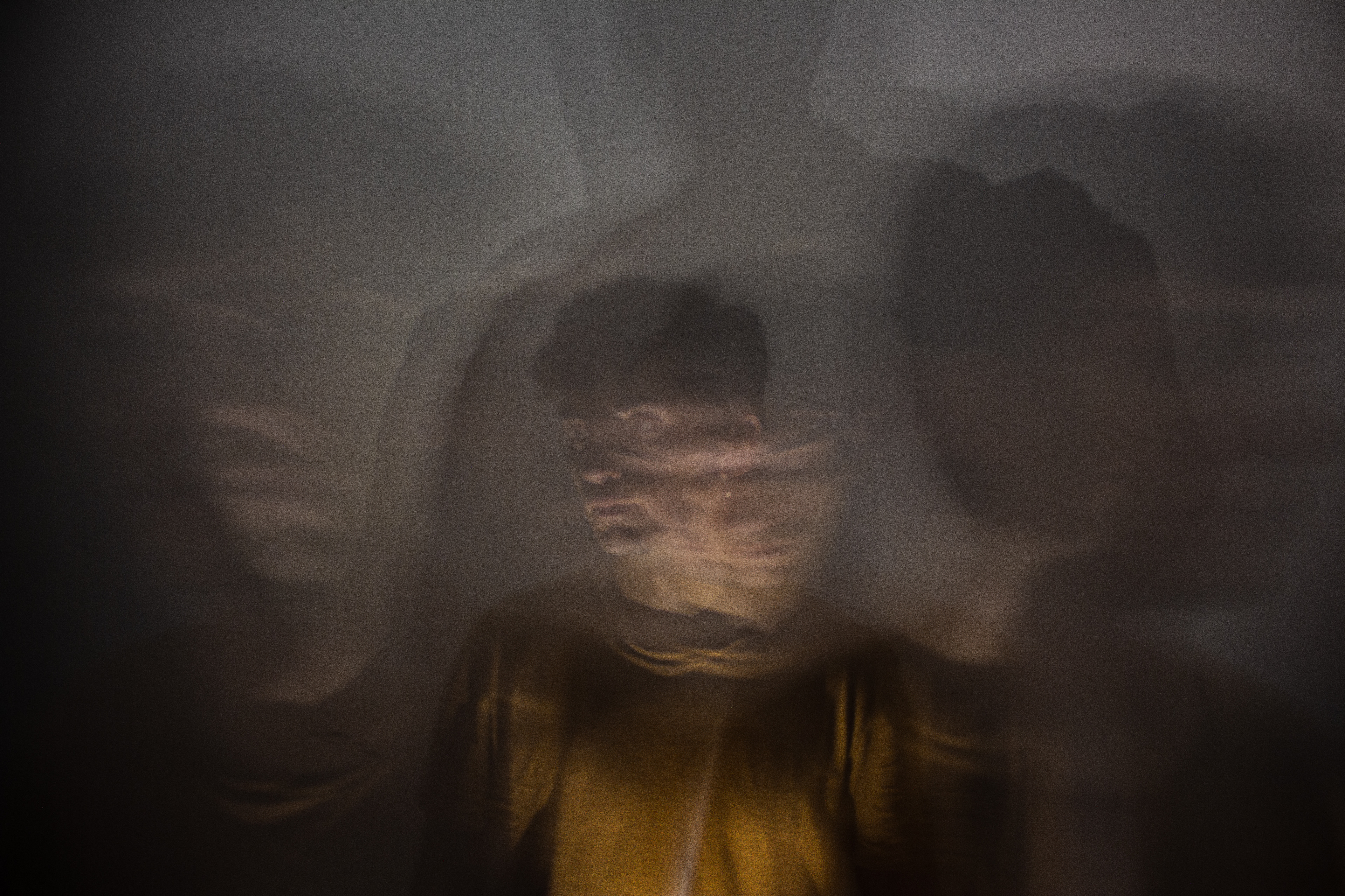 Nesse dia meu amigo Victor me mandou mensagem dizendo que queria tirar umas fotos, mas devido alguns problemas chegou na minha casa super desanimado. Pensei em algo criativo e estava querendo brincar com a camera fazia tempo, tirar fotos que não fossem clichê. O resultado me trouxe uma reflexão sobre nós, e de que como nós mesmos somos nossos piores inimigos.